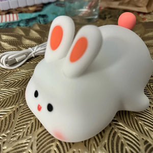 Struggling with bedtime? This soft rabbit night light offers a soothing glow that helps children drift off peacefully. Its silicone material is safe for cuddling, ensuring comfort and security all night. A perfect addition to any child's room, it transforms the nighttime routine into a calming experience, bringing relief to both kids and parents.
